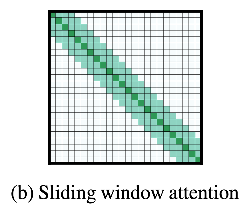 More formally, in this attention pattern, given a fixed window size , each token attends to tokens on each side. The computation complexity of this pattern is , which scales linearly with input sequence length . To make this attention pattern efficient, should be small compared with . But a model with typical multiple stacked transformers will have a large enough receptive field. This is analogous to CNNs where stacking laters of small kernels leads to high level features that are built from a large portion of the input (receptive field).