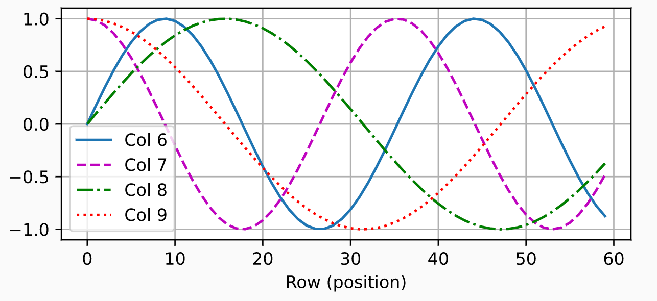 where is the position and is the dimension. That is, each dimension of the positional encoding corresponds to a sinusoid. The wavelengths form a geometric progression from to . This function was chosen because the authors hypothesized it would allow the model to easily learn to attend by relative positions, since for any fixed offset can be represented as a linear function of .